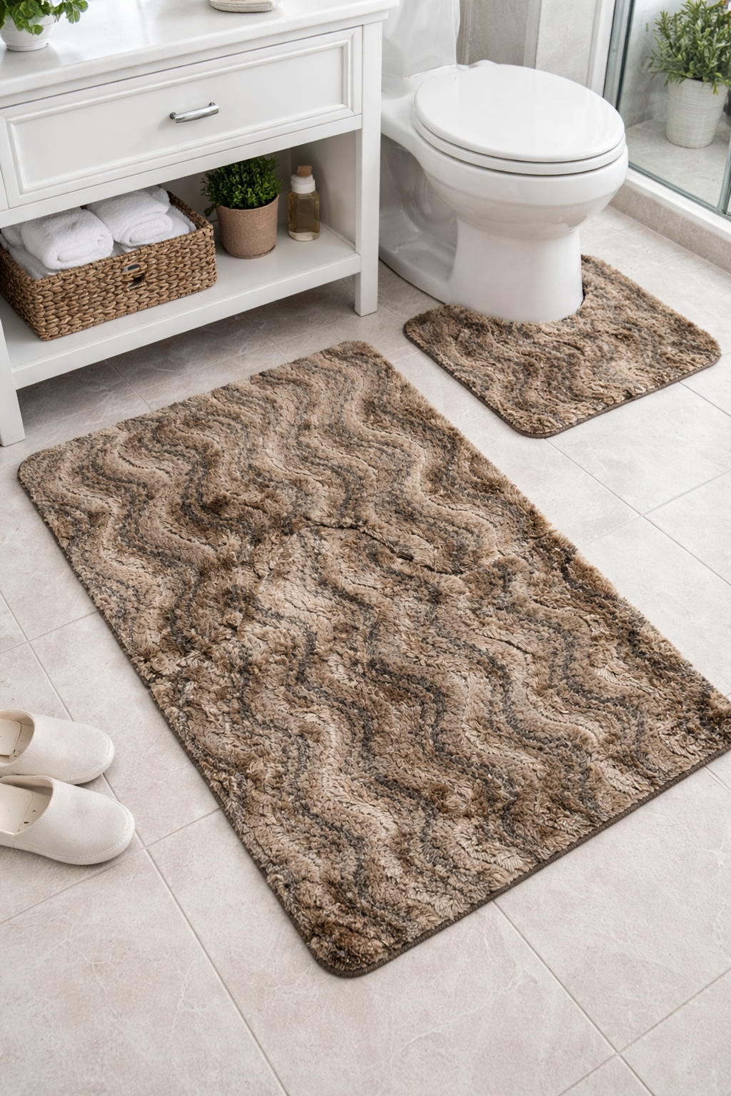 طابي حمّام بجودة عالية مصمّم باش يعطيك الراحة والأمان بعد كل دوش. خامة ناعمة وممتصّة للماء تخلي الأرضية ناشفة ونظيفة، مع قاعدة مضادة للانزلاق لسلامتك.